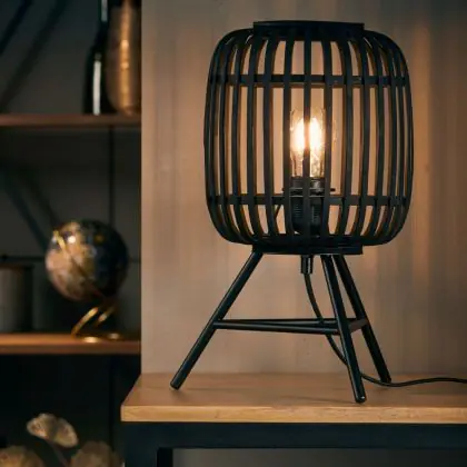 Brilliant Legnarow Lampada Da Tavolo Metallo Bambù Nero Legna | Adatto per 1x E27