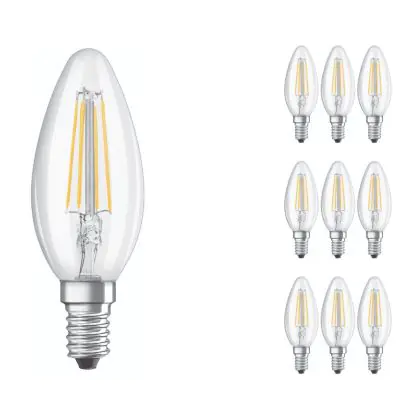 Confezione Multipack 10x Ledvance CLASSIC LED E14 Candela Filamento Chiara 4W 470lm - 827 Bianco Molto Caldo | Sostitutiva 40W