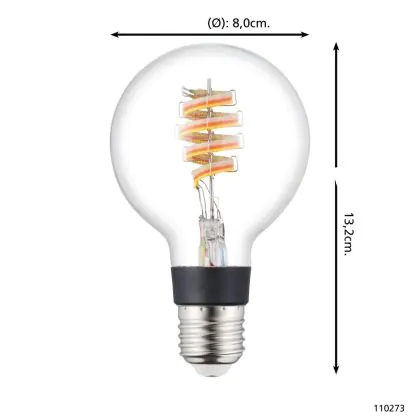 Descrizione Eglo Connect.Z Smart LED Globe E27 Filamento Chiara 4.9W 400lm - 830 Luce Calda - + RGB | Dimmerabile - Sostitutiva 40W