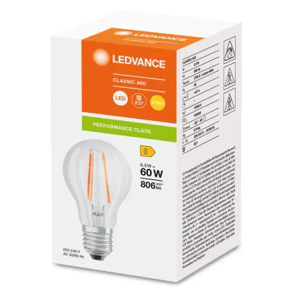 La Ledvance Classic LED E27 Pera Filamento Chiara 6.5W 806lm - 827 Bianco Molto Caldo | Sostitua 60W è la perfetta sostituzione per la tua lampada convenzionale 60W con attacco E27 grazie alla sua tecnologia LED. Passare a LED ti offrirà tanti vantaggi!