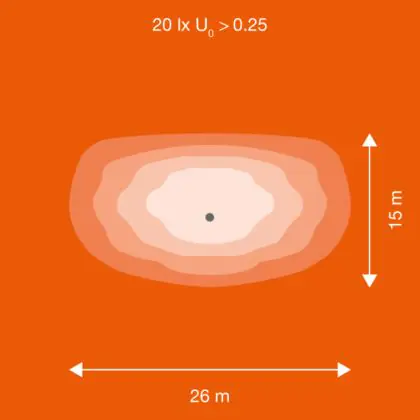 L'alloggiamento impermeabile di questa sorgente luminosa non è l'unica ragione per cui è perfetta per l'uso all'aperto. Infatti bisogna considerare anche la distribuzione della luce di questa lampada stradale, che ha apertura del fascio luminoso di 25x145° ed emette luce di colore 3000K - Luce Calda.