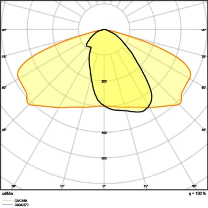 L'alloggiamento impermeabile di questa sorgente luminosa non è l'unica ragione per cui è perfetta per l'uso all'aperto. Infatti bisogna considerare anche la distribuzione della luce di questa lampada stradale, che ha apertura del fascio luminoso di 25x145° ed emette luce di colore 4000K - Bianco Freddo.