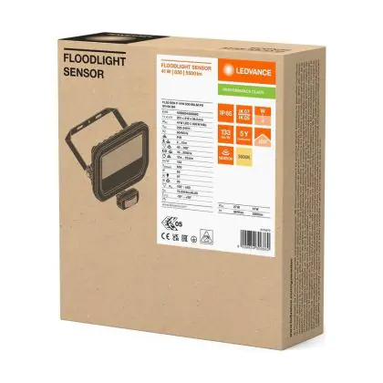 Descrizione Ledvance Proiettore LED Aluminium Nero 41W 5500lm 100D - 830 Luce Calda - | IP65 - Sensore Di Movimento E Luce - Simmetrico