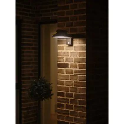 Descrizione Nordlux Solar Luce Da Parete Justina Metallo Nero 400lm - 830 Luce Calda - | IP44 - Sensore di Movimento e Luce