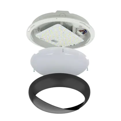Descrizione Noxion Bulkhead LED Pro V2 Bianca 12/16/20W 2400lm - 830-840-865 CCT | 325mm - IP65 - Sensore di Movimento e Luce - Emergenza 3H + Palpebra Il Anello Nero