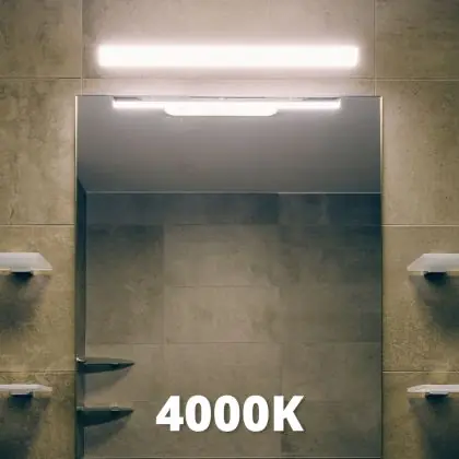 La temperatura di colore di questo apparecchio è 4000K - Bianco Freddo. Per le aree in cui la luce naturale è scarsa o assente, consigliamo una temperatura di colore di 6500 Kelvin, ovvero luce bianca come quella del giorno. La luce di 4000 Kelvin (bianco freddo) è una tonalità naturale e si adatta a molte situazioni lavorative e di studio. Una temperatura di colore di 3000 Kelvin (bianco caldo) è perfetta per spazi come un ingresso, un corridoio, una tromba delle scale o una galleria.