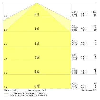Il codice colore è una combinazione di resa cromatica (CRI) e colore della luce (Kelvin). La prima cifra indica la resa cromatica (1 = resa del colore molto bassa, 9 = massima resa del colore), mentre la seconda e la terza si riferiscono al colore della luce. Esempio: il codice colore 830 indica una buona resa cromatica (8) e luce bianca calda (3000K). |