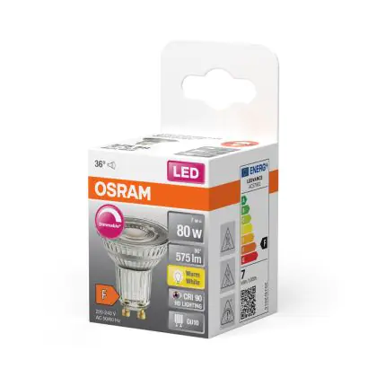 Descrizione Osram LED Superstar Riflettore Spot GU10 PAR16 8.3W 575lm 36D - 927 Bianco Molto Caldo | Miglior Resa Cromatica - Dimmerabile - Sostitutiva 80W
