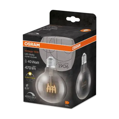 La Osram Vintage 1906 LED E27 Globe Filamento Chiara 4.8W 470lm - 827 Bianco Molto Caldo | Dimmerabile - Sostitutiva 40W è la perfetta sostituzione per la tua lampada convenzionale 40W con attacco E27 grazie alla sua tecnologia LED. Passare a LED ti offrirà tanti vantaggi!