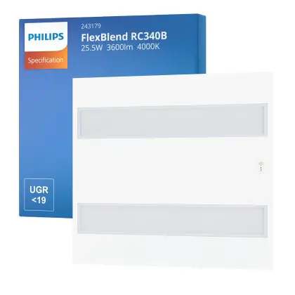Descrizione Philips Pannello a LED FlexBlend RC340B Bianca 25.5W 3600lm - 940 Bianco Freddo | 60x60cm - UGR <19 - Miglior resa cromatica - Sensore di movimento e luce